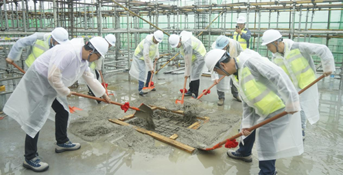 數(shù)月奮斗,翹首今日,出席人員手握系有紅綢的鐵鍬,將最后一方混凝土澆筑到位。放眼望去,建筑立面水泥基層展現(xiàn)眼前,主結(jié)構(gòu)巍然矗立,渾然一體,混凝土澆筑縝密細(xì)致,每個(gè)細(xì)節(jié)都凝結(jié)著B(niǎo)OTH人的心血與汗水,無(wú)處不體現(xiàn)BOTH精益求精的品質(zhì)。