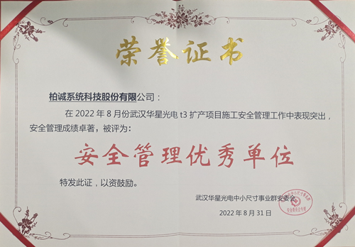 近日,BOTH武漢華星t5項目團隊再次榮獲“安全管理優(yōu)秀單位”獎項,這是武漢華星t5項目團隊連續(xù)3個月獲得此殊榮,項目安全員獲得“安全管理優(yōu)秀個人獎”。
