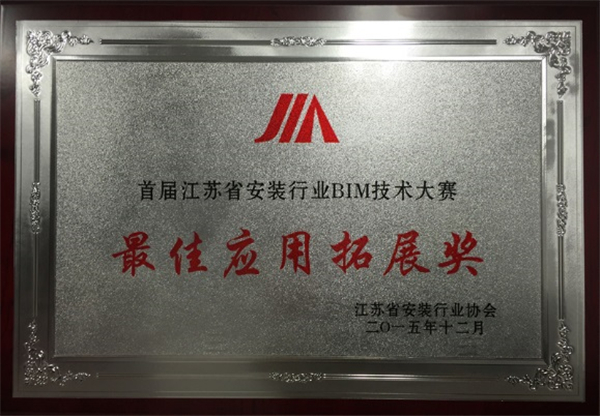 經(jīng)評(píng)審,我司參賽的BIM技術(shù)方案在第一屆江蘇省安裝行業(yè)BIM技術(shù)應(yīng)用大賽中得到好評(píng),榮獲“最佳BIM應(yīng)用拓展獎(jiǎng)”!