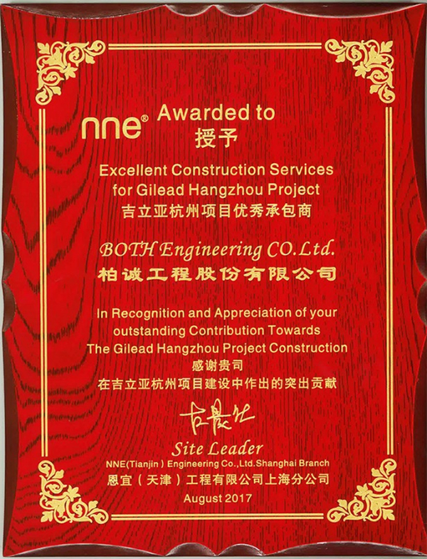 2017年8月,我公司在杭州吉利亞項(xiàng)目中喜獲“優(yōu)秀承包商”稱(chēng)號(hào)。