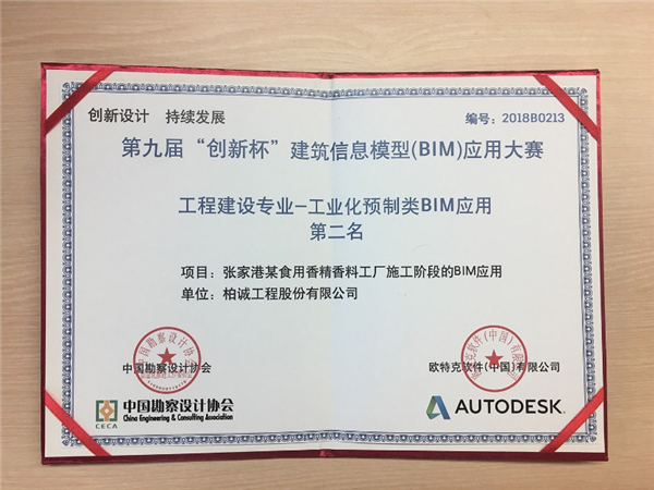 2018年9月,公司張家港某食用香精香料的BIM應用項目,在第九屆“創(chuàng)新杯”建筑信息模型(BIM)應用大賽中表現(xiàn)優(yōu)秀,喜獲工程建設(shè)專業(yè)—工業(yè)化預制類BIM應用第二名,特此通報。