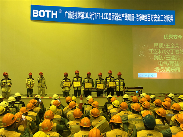 為了慶祝該項目取得的階段性成果,激勵項目全體人員,再接再厲、平安順利地完成項目后續(xù)工作,公司舉辦了廣州超視堺第10.5代TFT-LCD顯示器生產(chǎn)線項目潔凈B包100萬安全工時慶典活動。