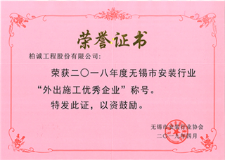As a company whose main business covers the whole country, our company has always followed the principle of "standardized operation and stable operation", and our construction business has grown steadily and won the domestic market. The local installation Association affirmed and recognized our performance in the field of construction I, and issued 2018 to our company in April 2019.
